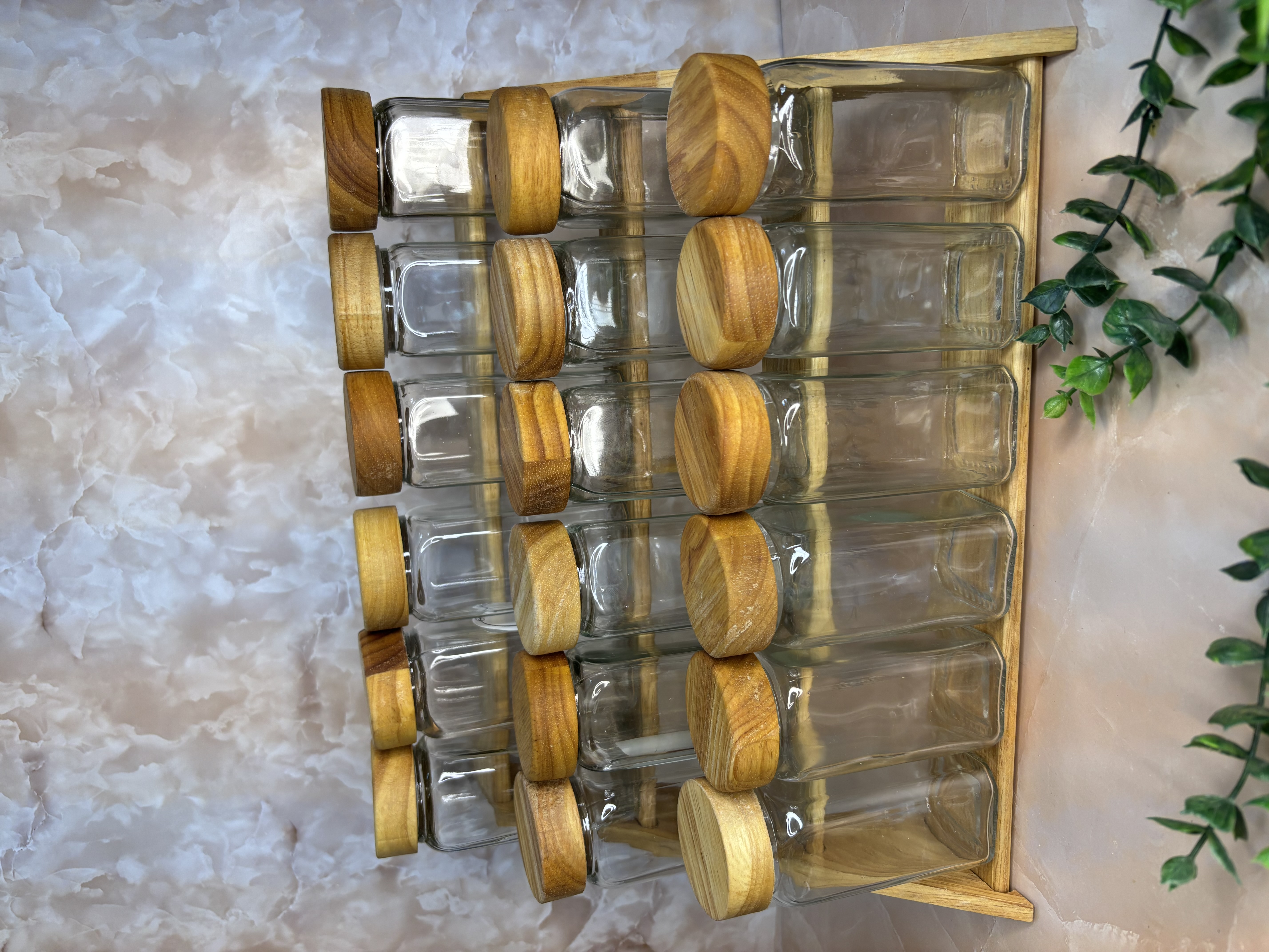 جا ادویه ۱۸ عددی شیشه مک کارتی درب چوبی